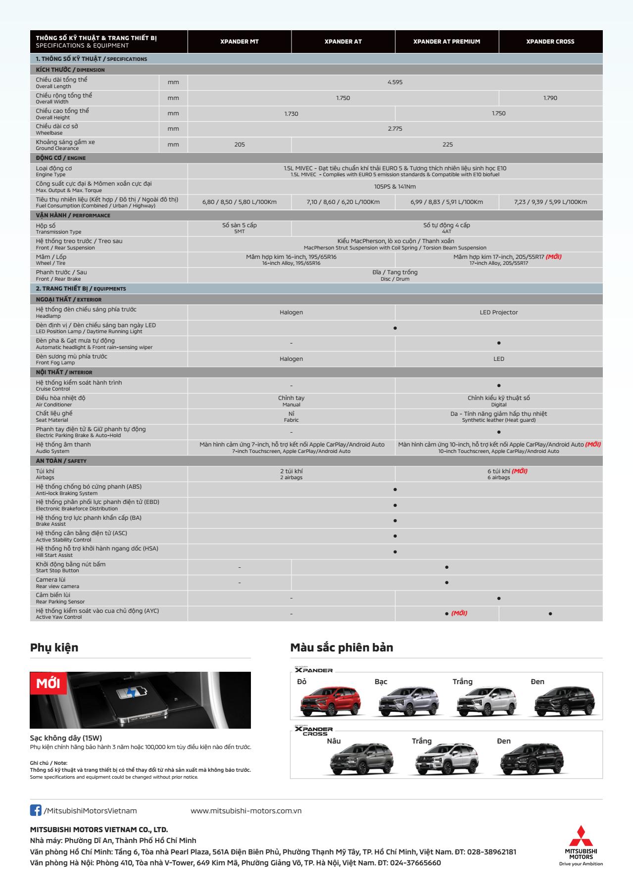 - ●Tất cả các bản: Tặng kèm sổ Da đựng giấy tờ logo MITSUBISHI + bảo dưỡng miễn phí nhân công 1000 và 5000 KM + bộ phụ kiện kèm theo tùy thời điểm không cố định (Phim cách nhiệt 3M, trải sàn da chống thấm, camera hành trình, bọc vô lăng, tinh dầu thơm treo xe)